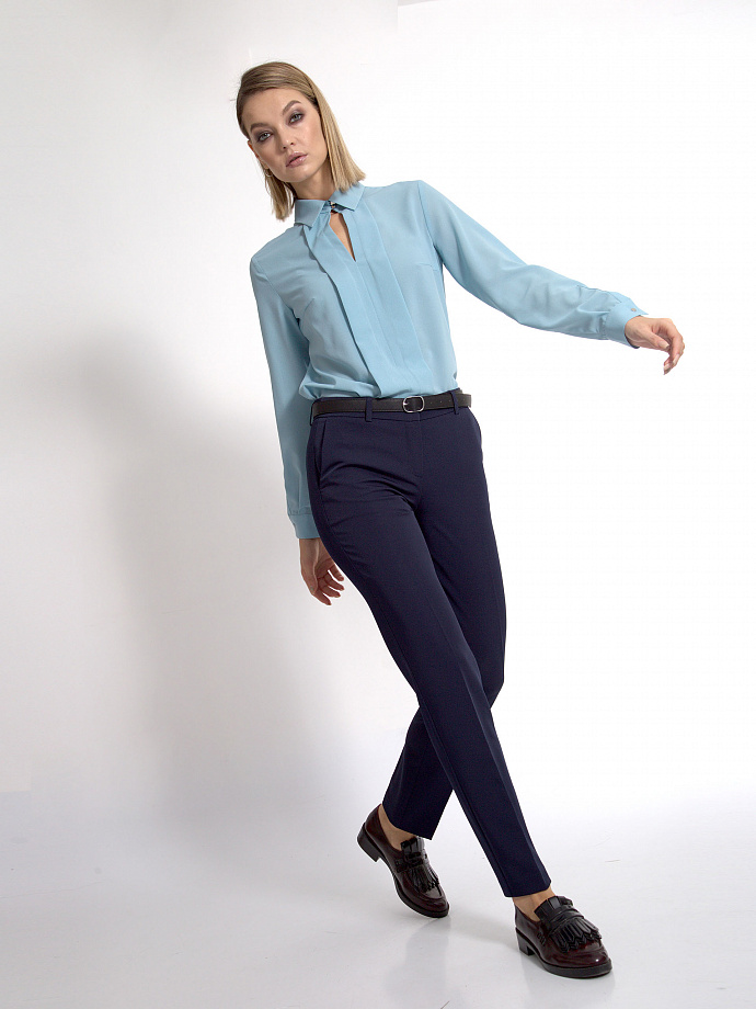 Брюки комфортной средней посадки, слегка зауженные к низу..