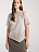 Модель прямого силуэта, со спущенным плечом, коротким рукавом и фигурной ассиметричной линией низа. Горловина обработана бейкой.