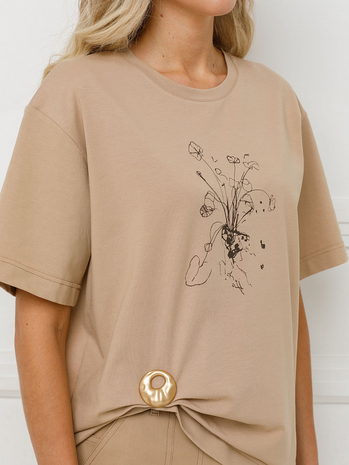 Футболка с принтом и брошью