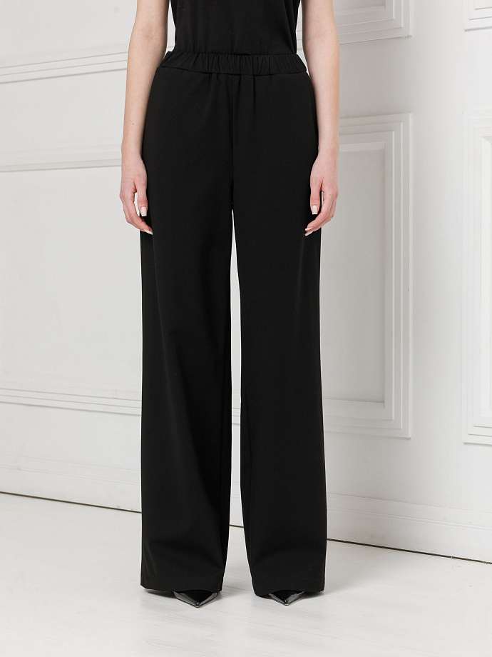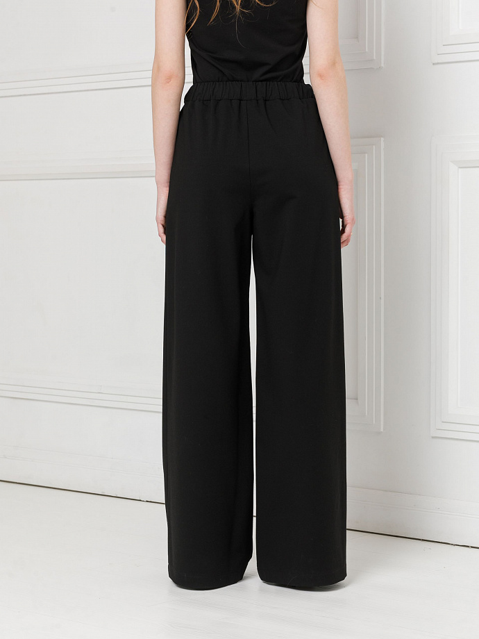 Брюки свободного кроя, на эластичном поясе. В боковых швах карманы. Длина: 42р - 110см, 54р - 111,5см, ширина по низу: 42р - 30см, 52р - 33см.