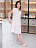 Модель А-образного силуэта, с фигурным подрезом выше линии талии и коротким цельнокроеным рукавом. Под подрезом небольшая сборка. V-образный вырез горловины обработан окантовкой. Платье декорировано пуговицами.