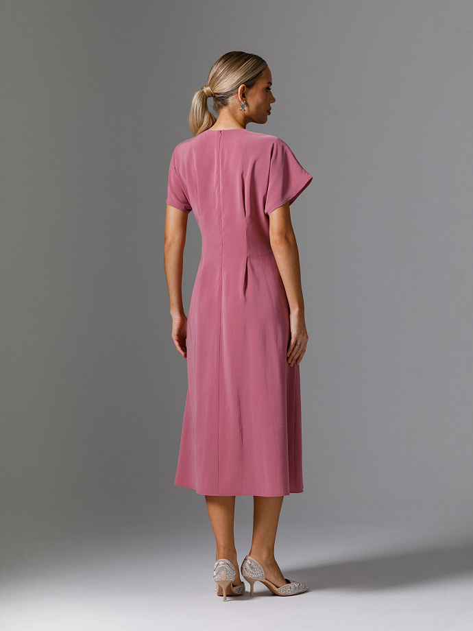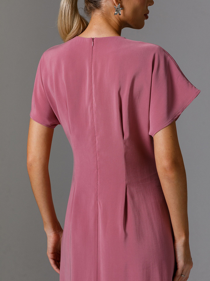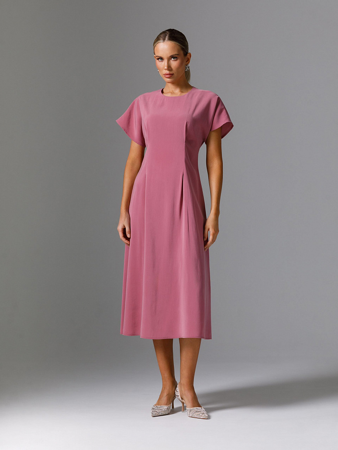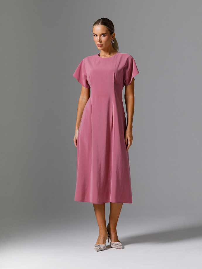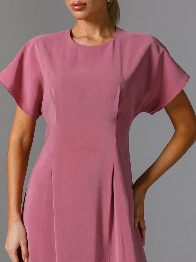 Модель Х-силуэта, без подклада. В среднем шве спинки обработана потайная застёжка молния. По талии застрочены защипы.